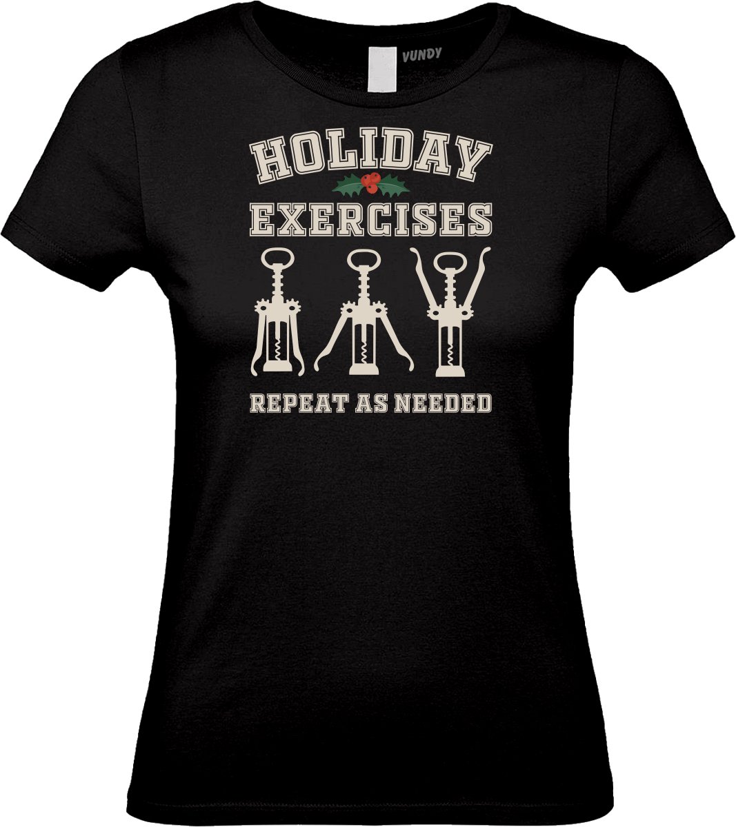 Dames t-shirt Holiday Exersize | Foute Kersttrui Dames Heren | Kerstcadeau | Kerstpakket | Zwart (Dames) | maat XXL