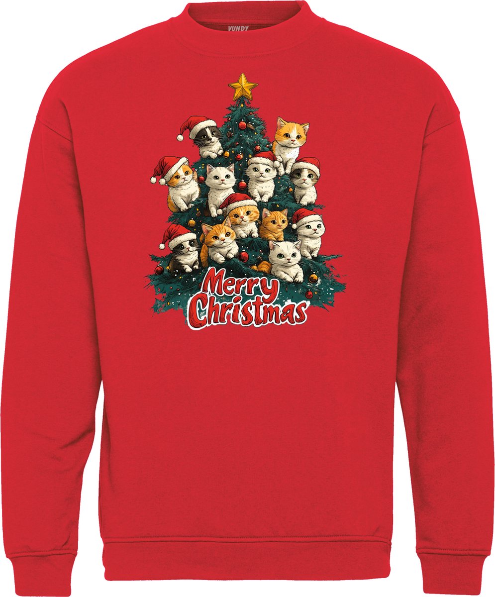 Kersttrui Kerstboom Kat Poes | Foute Kersttrui Dames Heren | Kerstcadeau | Kerstpakket | Rood | maat 4XL