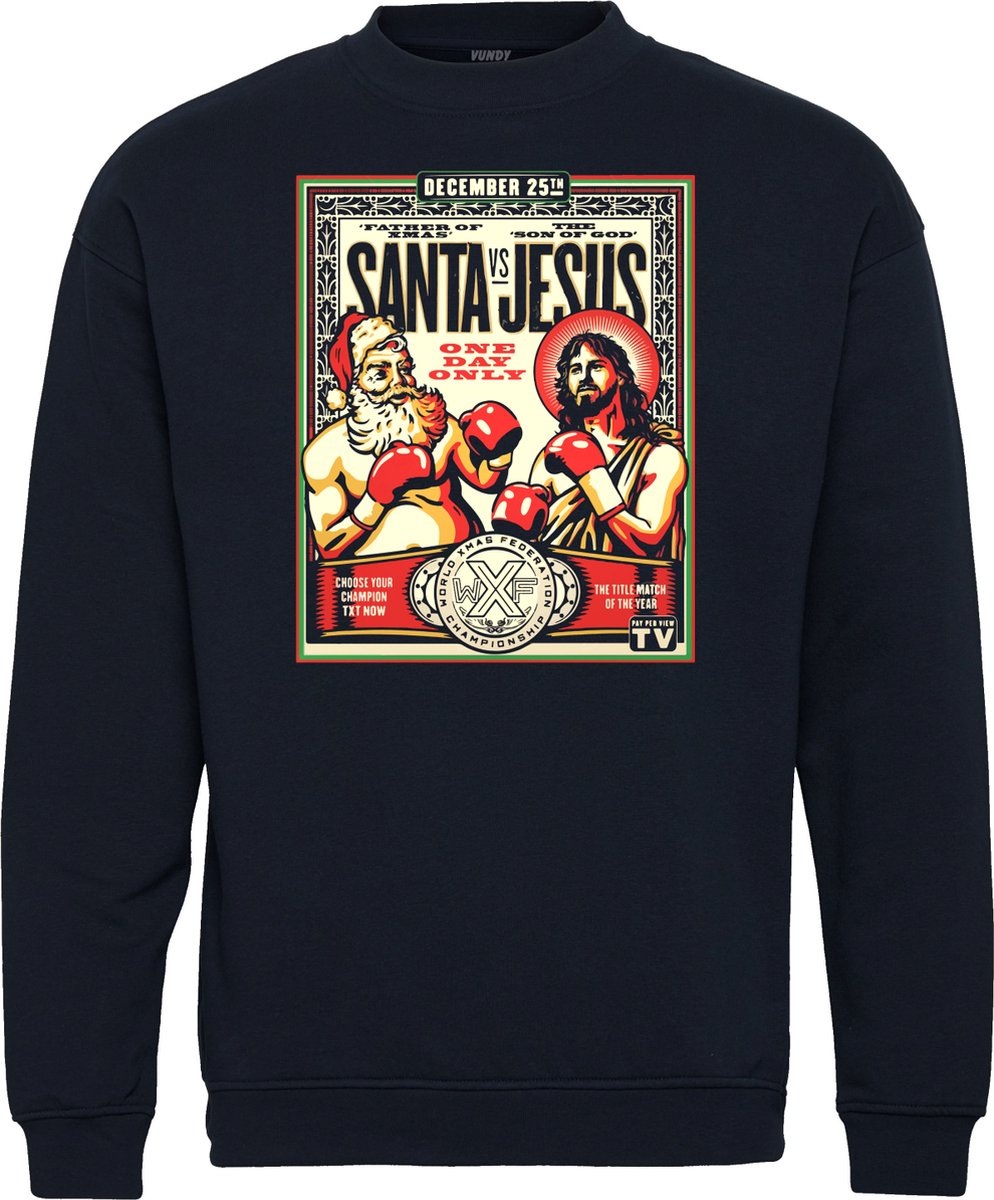 Kersttrui Kerstman vs Jezus | Foute Kersttrui Dames Heren | Kerstcadeau | Kerstpakket | Navy | maat 4XL