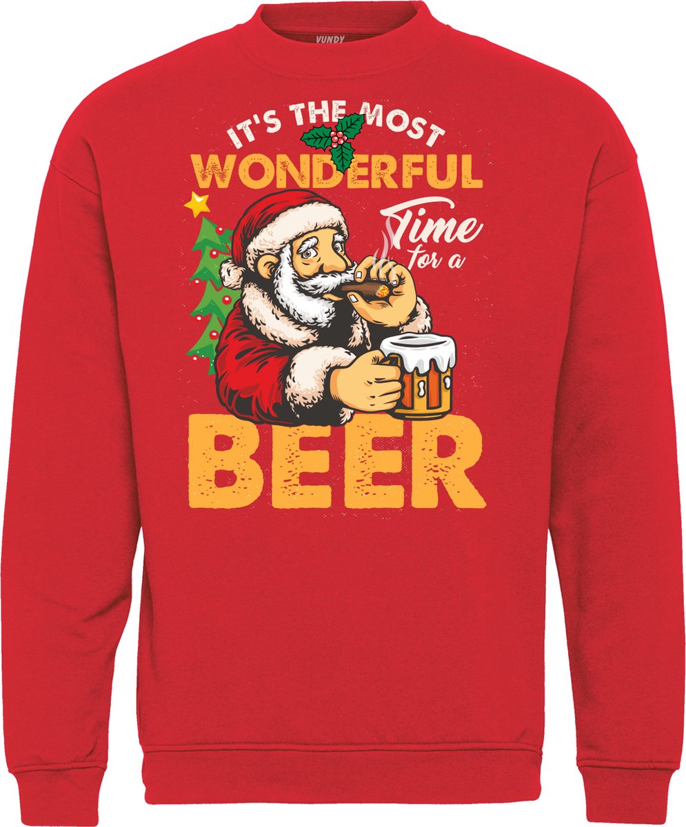 Kersttrui Wonderfull time for a beer | Foute Kersttrui Dames Heren | Kerstcadeau | Kerstpakket | Rood | maat 4XL