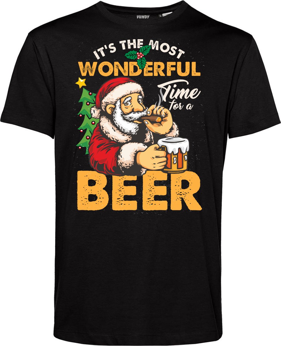 T-shirt Wonderfull Time For A Beer | Foute Kersttrui Dames Heren | Kerstcadeau | Kerstpakket | Zwart | maat S