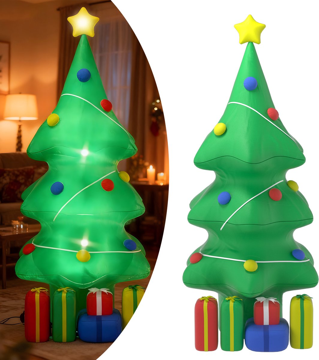 150 cm opblaasbare kerstboom met cadeaudozen, ledverlichting en kerstversiering – opblaasbare kerstversiering voor binnen en buiten