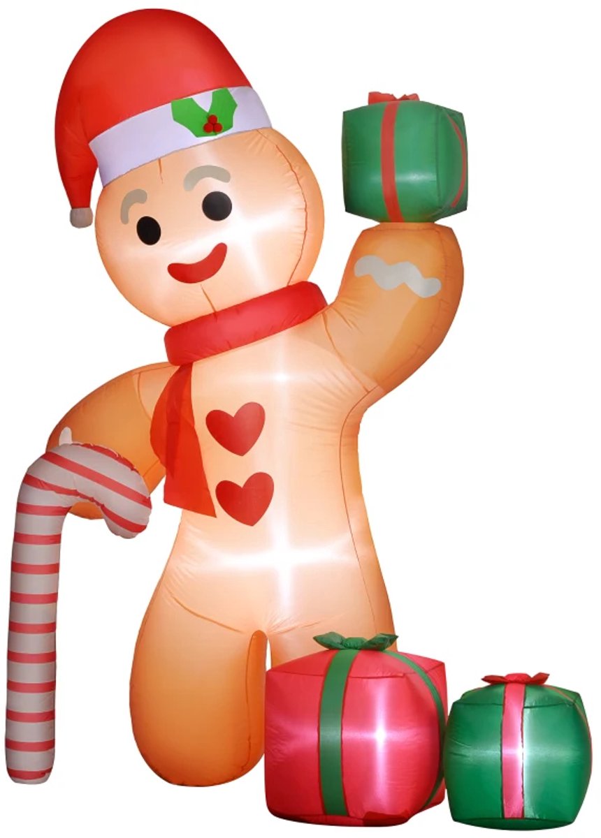Type: Opblaasbare peperkoekman met zuurstok en drie cadeautjes