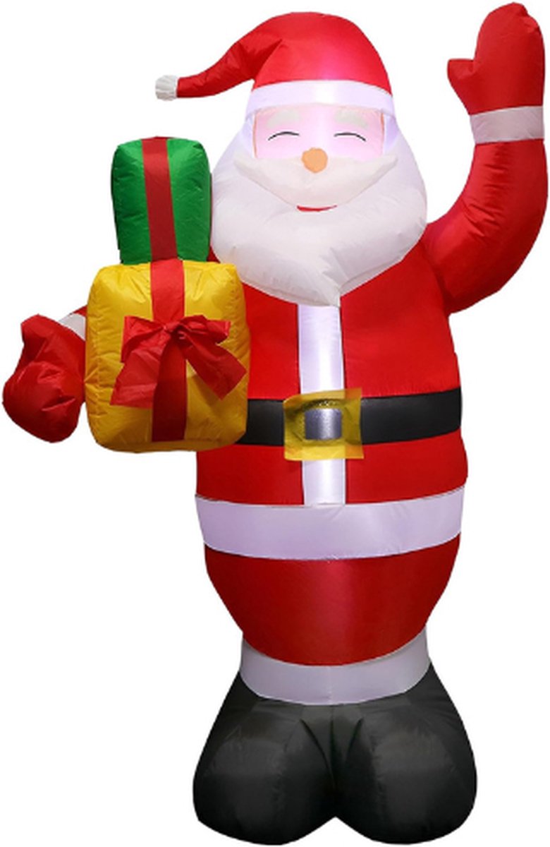 Door de weersbestendige eigenschappen kun je hem gerust buiten in je tuin plaatsen zonder dat je je zorgen hoeft te maken over schade door de elementen. De kerstman wordt geleverd met grondpennen en touwen waarmee je hem stevig kunt verankeren, zodat hij niet wegwaait bij een briesje. Dit maakt hem ook een uitstekende keuze voor het versieren van je tuinfeest of buitenfeest.