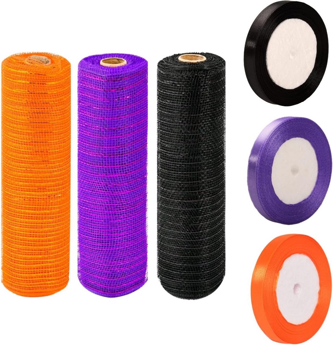 6 Rollen Deco Mesh Lint Decoratie Lint Met Satijn voor Kerstversiering en Kransen – Zwart, Oranje, Paars