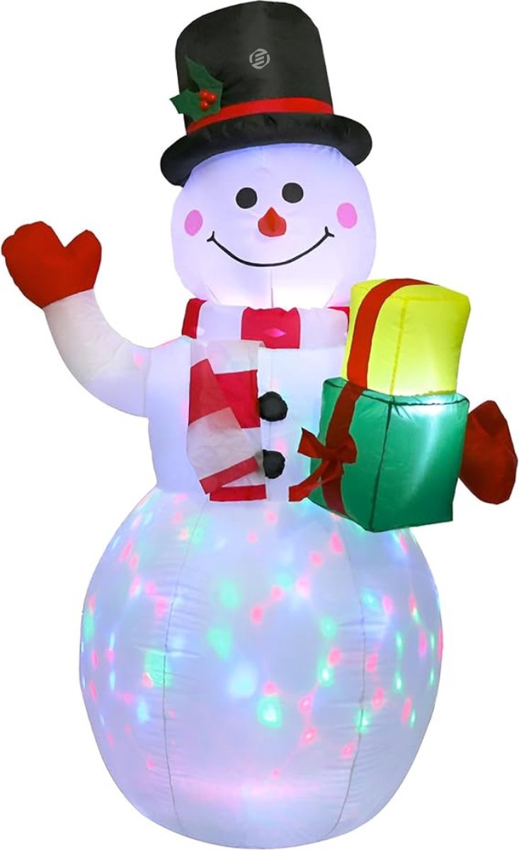 Maak de feestdagen extra speciaal met deze verlichte opblaasbare sneeuwpop die warmte en vrolijkheid brengt, zowel binnen als buiten.