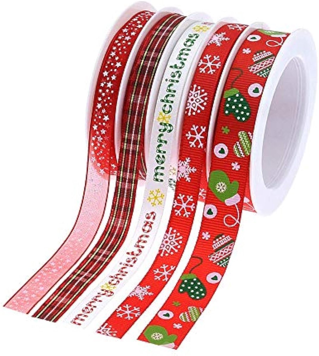 Kerst Linten – 5 Rollen Grosgrain – 5m – Cadeau & DIY Kerstversiering Set
