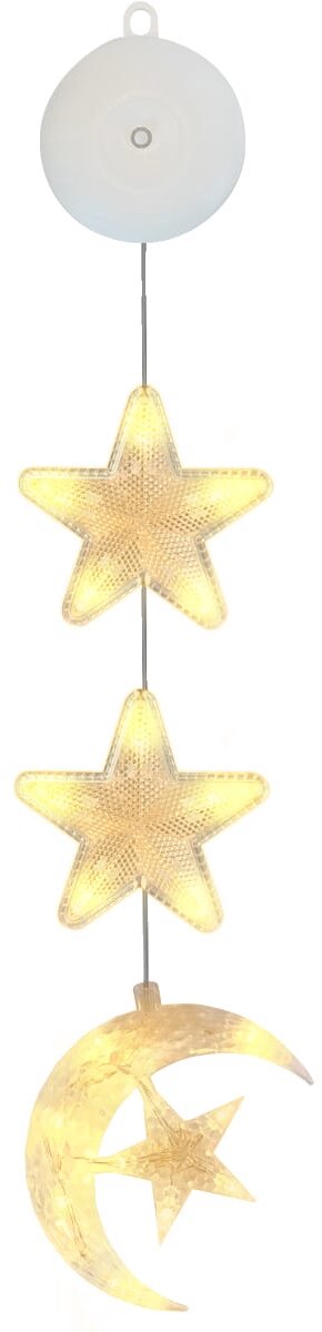 Kerstverlichting Raam Halve Maan met Ster – 74cm – Inclusief Batterijen – Kerstversiering met Zuignap – Warm Wit