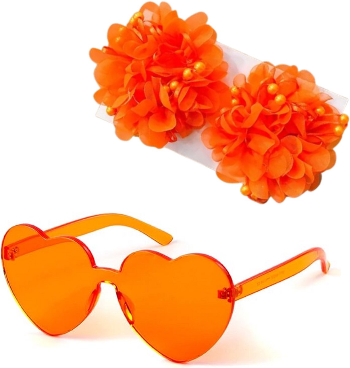 Koningsdag accessoires – Koningsdag – Koningsdag bril – Oranje bril – Oranje hartjes bril – Koningsdag kleding dames Wil je op Koningsdag wel oranje dragen, maar niet compleet over the top gaan? Dan is deze combinatie van een oranje hartjesbril en oranje scrunchie met bloemen de perfecte keuze. Een subtiele, maar stijlvolle manier om mee te doen aan de feestelijke sfeer zonder in een volledig oranje outfit te hoeven lopen. Deze unisex accessoires passen bij iedereen en maken jouw Koningsdag-look helemaal af, of je nu de stad ingaat, een festival bezoekt of lekker op de vrijmarkt rondloopt.