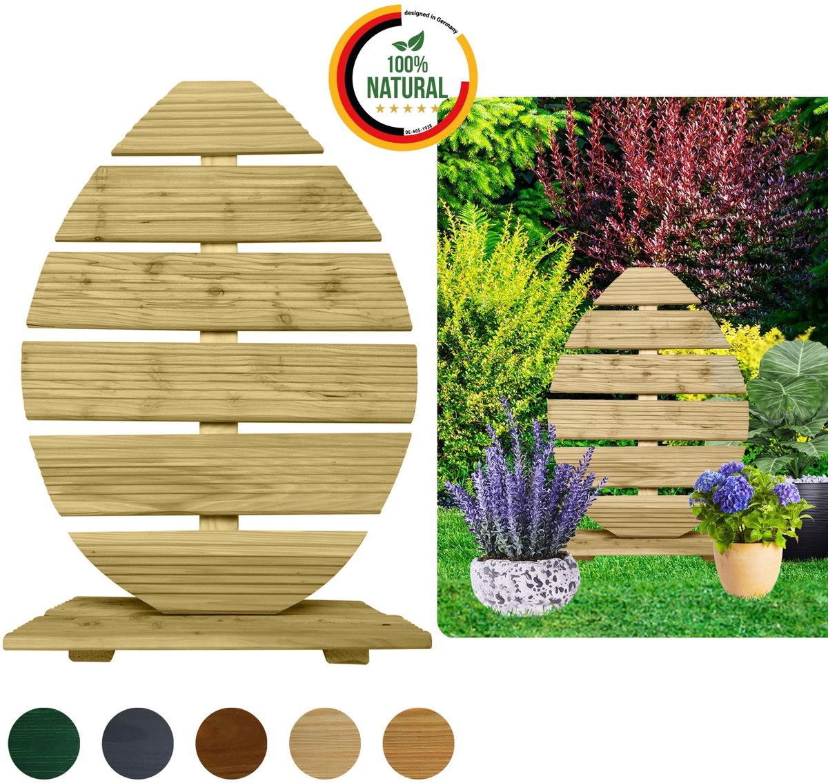 Breng een stukje natuur in uw huis en tuin met onze houten paaseieren van hoogwaardig larikshout. Deze unieke paasdecoratie is ideaal voor de lentetijd en past zowel binnen als buiten perfect bij uw paasdecoratie. De XXL-paaseieren zijn verkrijgbaar in de maten 45 cm en 70 cm en bieden tal van mogelijkheden voor een gepersonaliseerde lentecoratie.