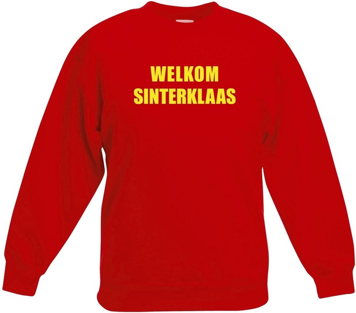 Rode Sinterklaas sweater / trui Welkom Sinterklaas voor kinderen. Heet Sinterklaas welkom en trek deze leuke Sint sweatshirt aan. Materiaal: 80% katoen en 20% polyester (260 grams).