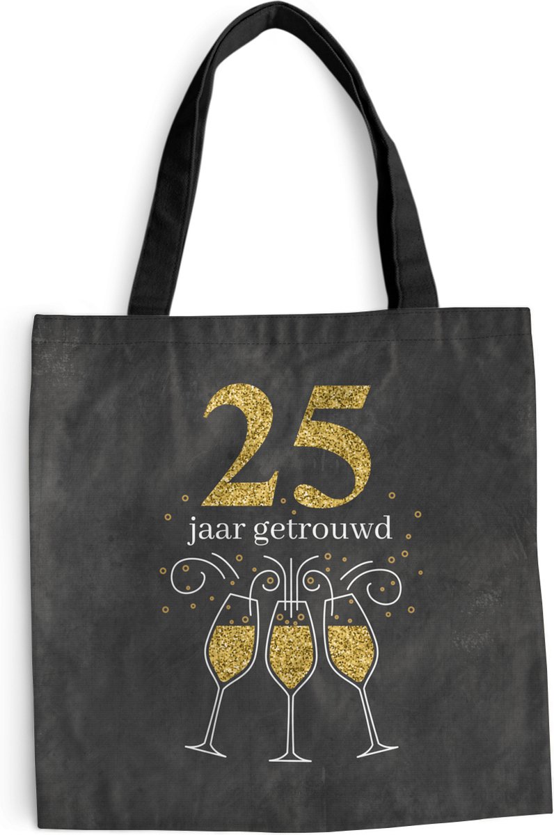 MuchoWow® Schoudertas – Strandtas – Big Shopper – Boodschappentas – Trouwen – 25 jaar getrouwd – Quotes – Spreuken – 45×45 cm – Katoenen tas