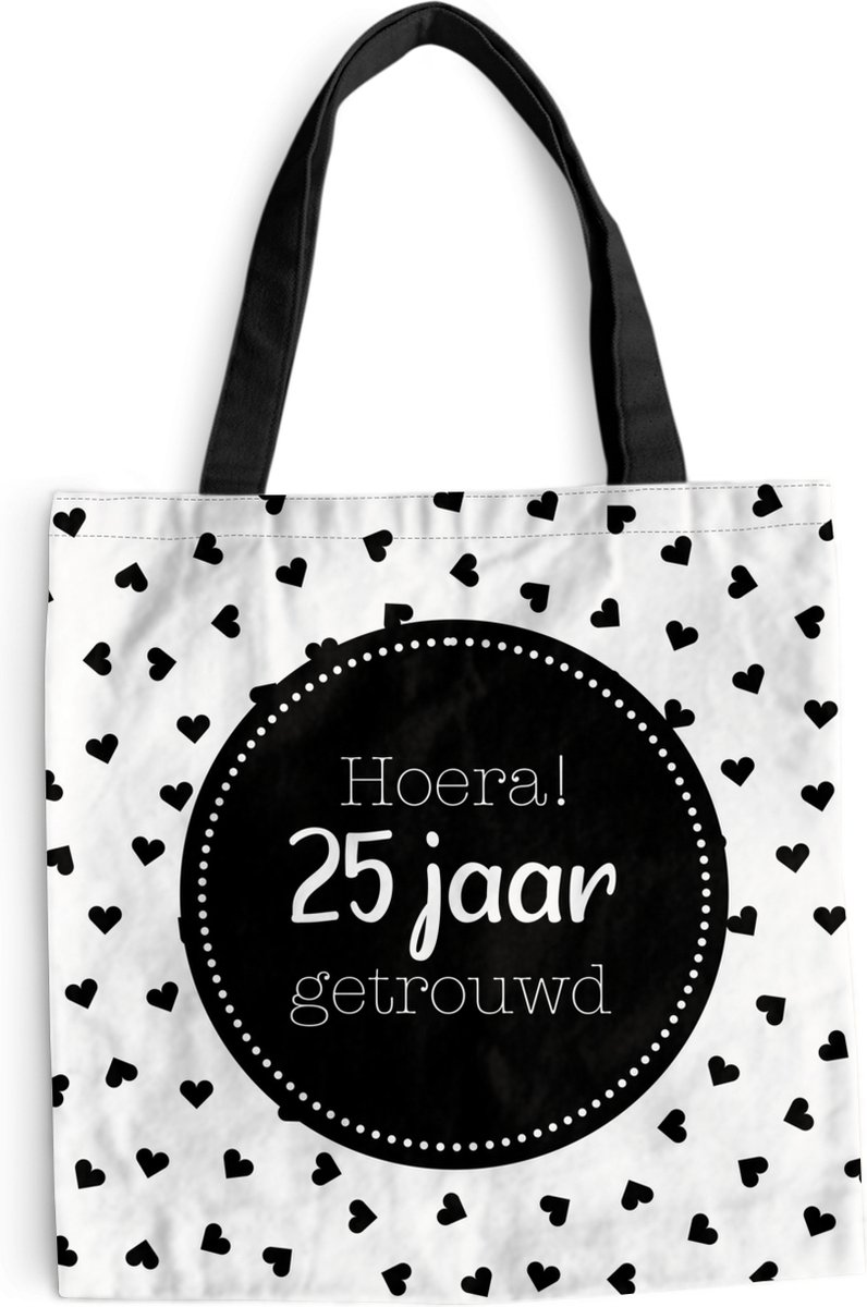 MuchoWow® Schoudertas – Strandtas – Big Shopper – Boodschappentas – Trouwen – Hoera! 25 jaar getrouwd – Spreuken – Quotes – 40×40 cm – Katoenen tas