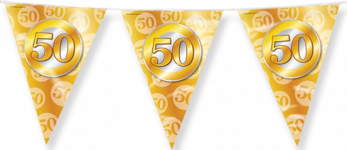 Vier de gedenkwaardige gebeurtenis van 50 jaar met onze 2×50 Jaar Getrouwd vlaggenlijn!