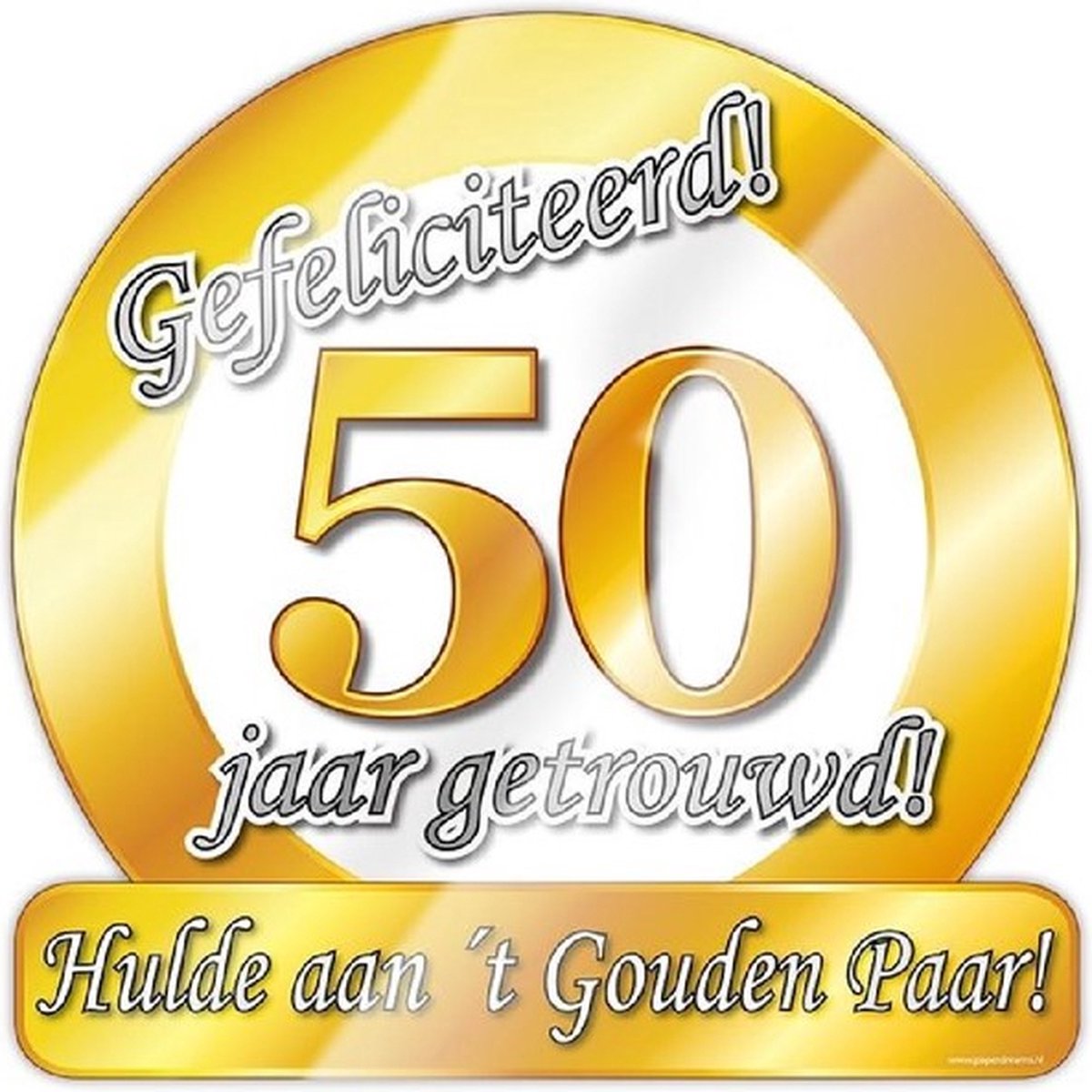 Tekst: Gefeliciteerd! 50 jaar getrouwd. Hulde aan ’t gouden paar