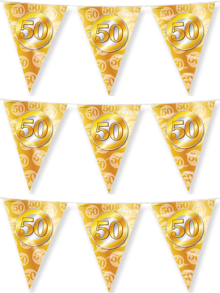 Paperdream Jubileum vlaggetjes – 3x – 50 jaar getrouwd – feestversiering – 10 mtr – folie – dubbelzijdig