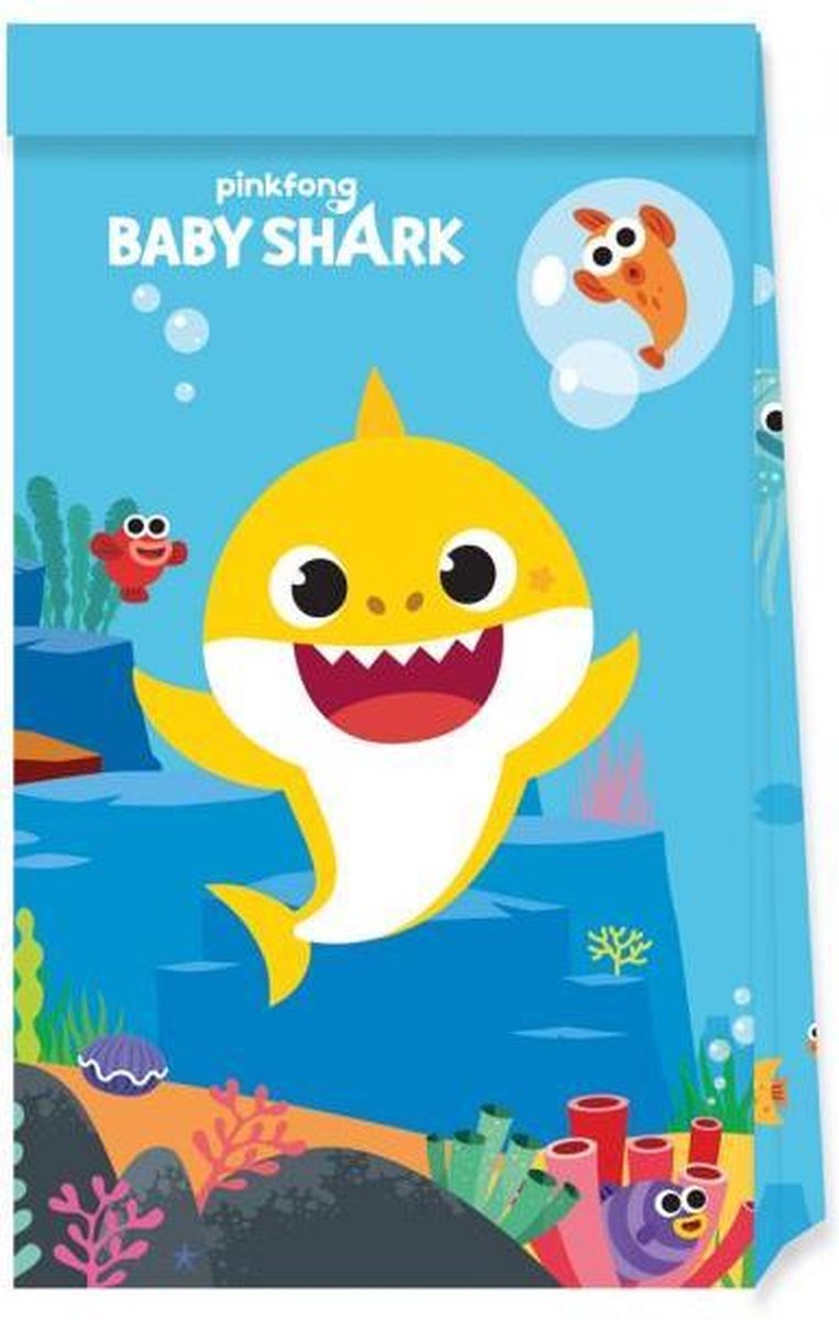 Procos Uitdeelzakjes Baby Shark Junior Papier Blauw 4 Stuks