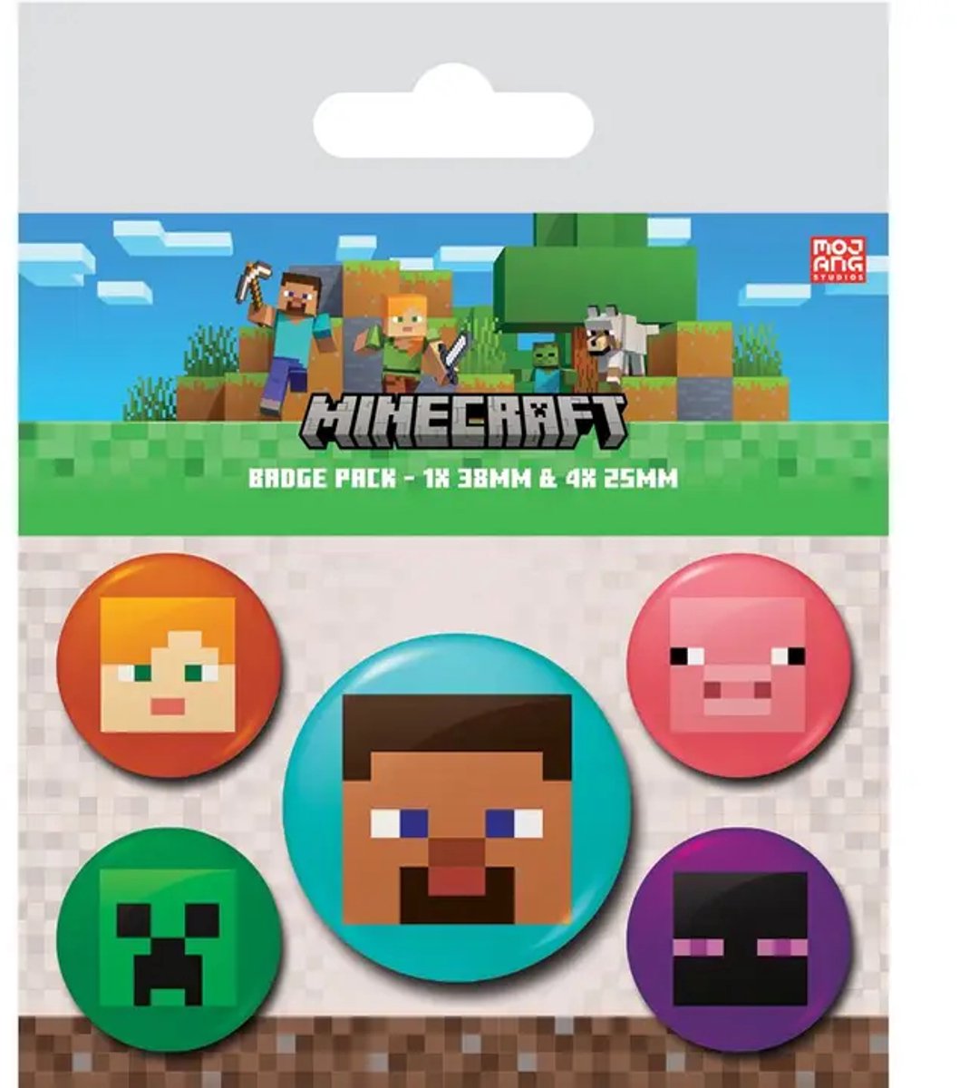 Minecraft Faces Button 5 Pack Laat je liefde voor blokkerige avonturen zien met de Minecraft Faces Button Set. Deze officiële set bevat vijf buttons met herkenbare gezichten uit de wereld van Minecraft, waaronder de iconische Creeper, Steve en andere bekende karakters. Perfect voor fans die hun passie voor bouwen, verkennen en overleven willen laten zien, waar ze ook gaan.