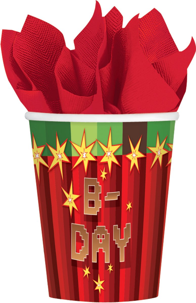Vier je een verjaardag feestje voor een echte Minecraft fan? Dan zijn deze bekers erg mooi om als decoratie erbij te hebben. In de verpakking ontvang je 8 papieren bekers met Minecraft uitstraling en de letters B-Day. In de bekers kan 250 ml drinken, omdat de bekers van papier zijn kun je ze na gebruik wegwerpen.