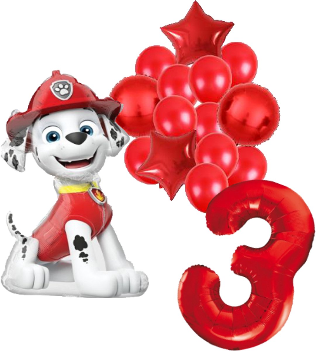 Deze folie balonnenpakket van Paw Patrol Marschall maakt het feest compleet.