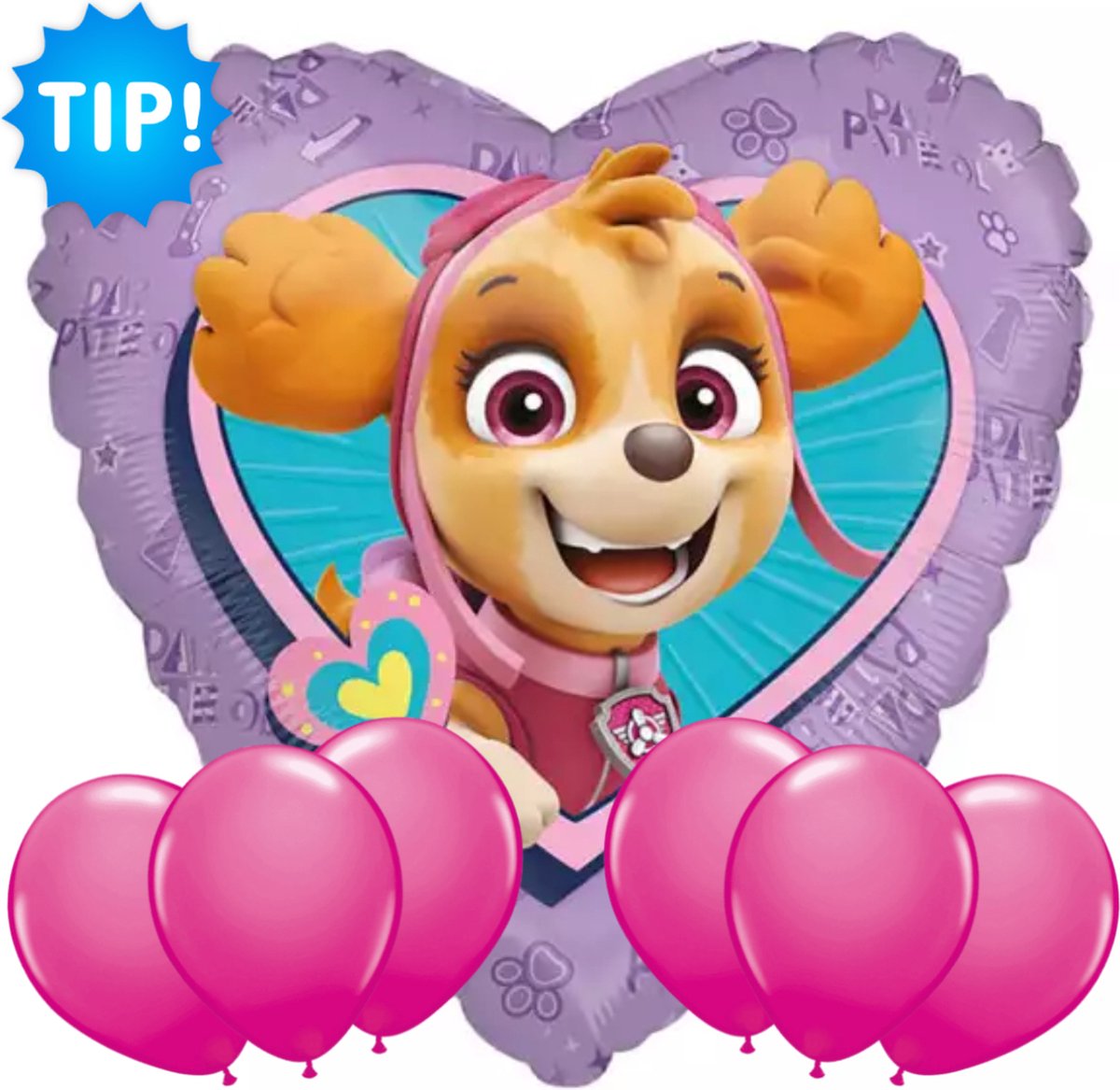 Paw Patrol Skye Hart Ballon 45 cm + 6 Kleur Ballonnen 32 cm – Verjaardag Versiering – Folieballon Ongevuld – Ballonnenboog Decoratie Feest – Party Slinger Jongen Meisje