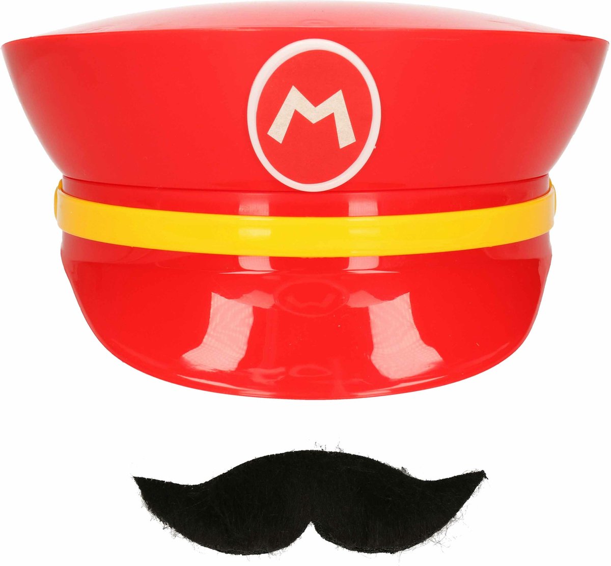 Game verkleed set pet en snor – loodgieter Mario – rood – unisex – carnaval/themafeest outfit