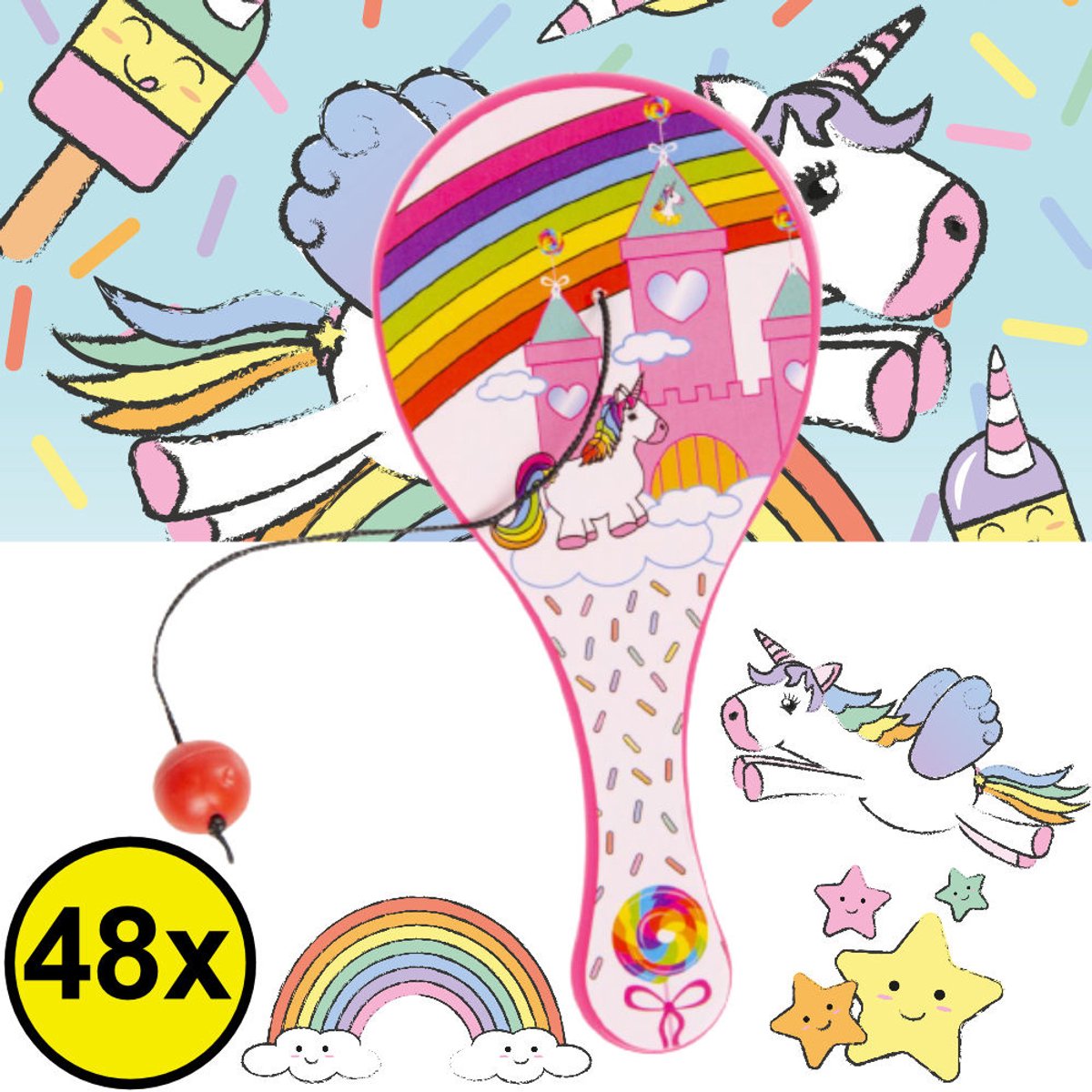 48 STUKS Decopatent® Uitdeelcadeaus 48 STUKS Unicorn Paddle Bat Bal Spel met Elastiek – Speelgoed Traktatie Uitdeelcadeautjes voor kinderen