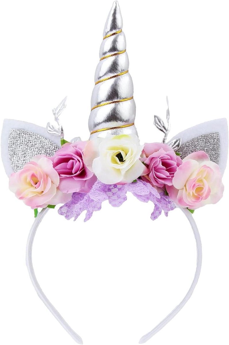 De bloemkop met glinsterende oren voegt een vleugje magie toe aan elke outfit, waardoor je kleine prinses zich speciaal en uniek voelt tijdens het feest.