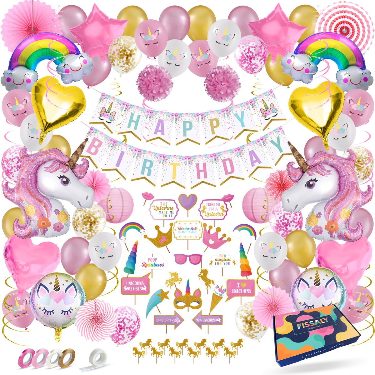 Fissaly 112 Stuks Luxe Eenhoorn Verjaardag Decoratie Versiering met Ballonnen – Unicorn Set – Kinderfeest – Feest – Feestpakket