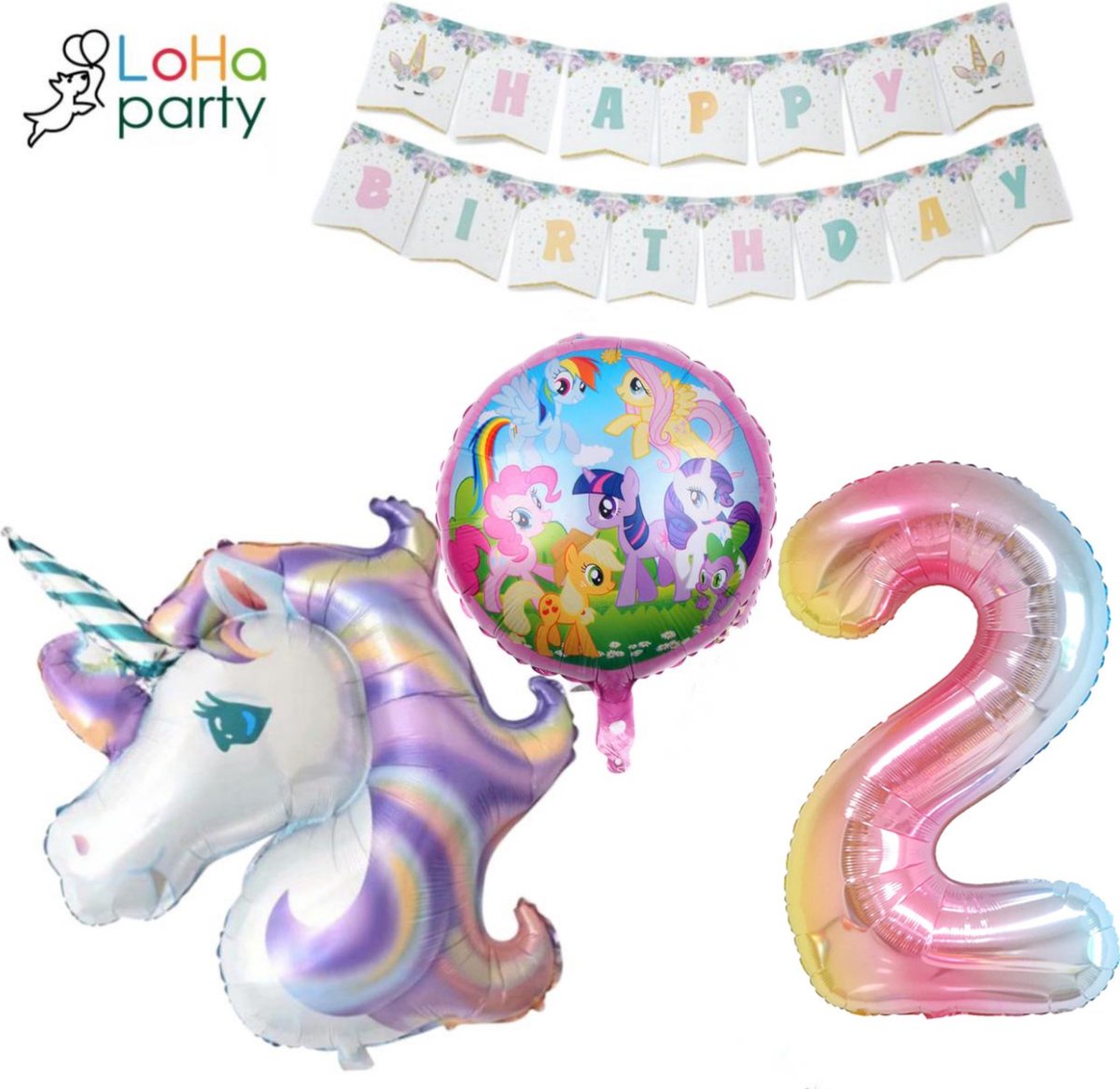 Loha-party® XXL Unicorns met XXL cijfer 2 Versiering ballonen-Folie Cijfer 2 Ballon -Eenhoorn Folie Ballon 2e Verjaardag Versiering-Unicorn Ballon Decoratie Feest Versiering-XXL-Little pony-Happy birthday-Folie ballonnen