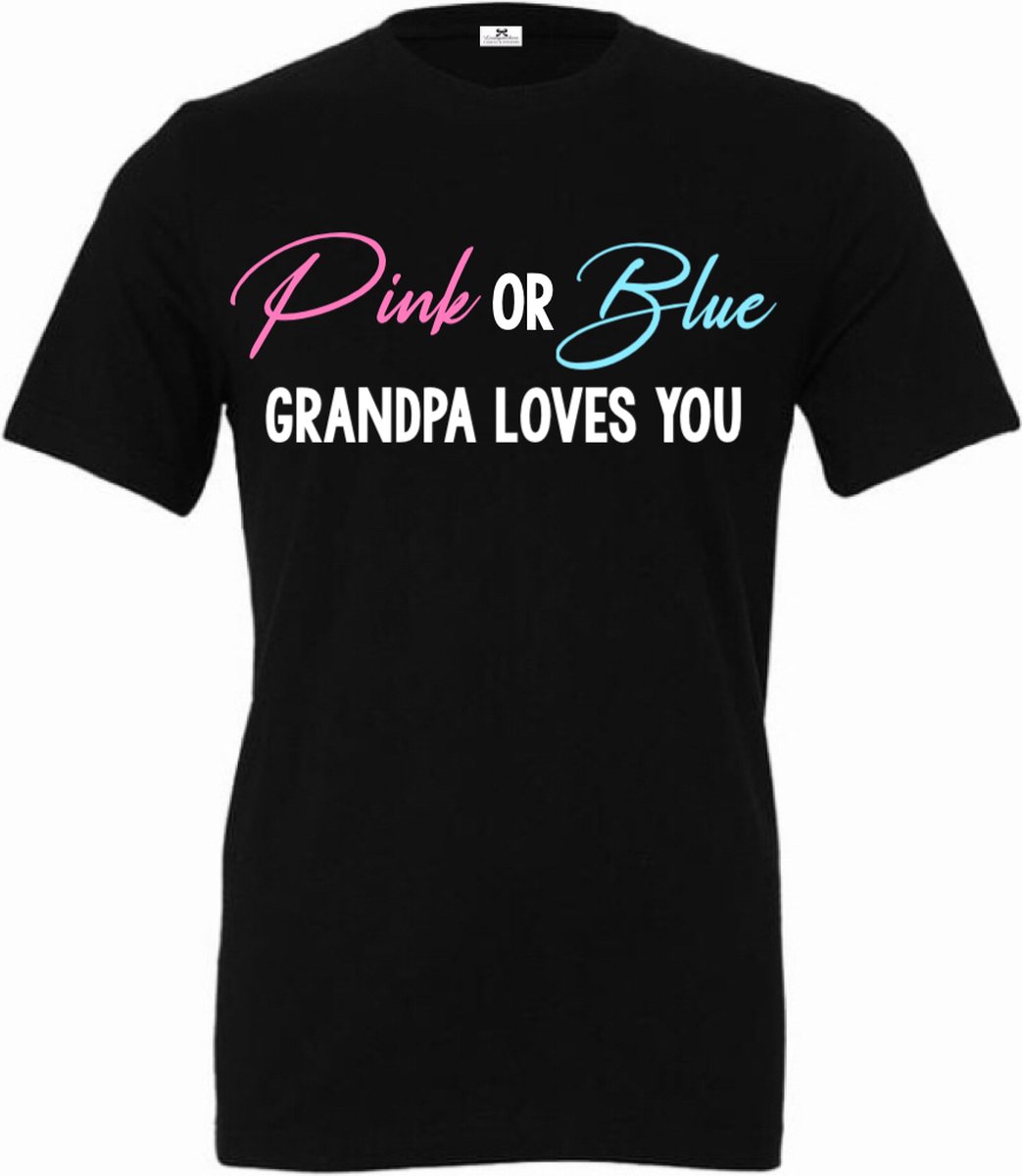 Hebben jullie binnenkort een gender reveal party?dan is dit shirt Pink or Blue grandpa loves you een super leuk shirt op aan te trekken op de