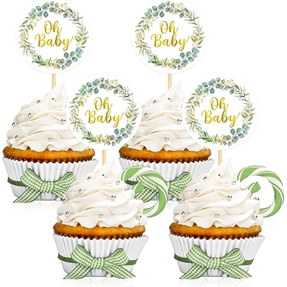 25 stuks babyshower taartdecoraties Oh Baby Cupcake Toppers Boho babyshower taartinzetstukken voor verjaardag meisjes jongens gender onthullingsfeest (Eucalyptus)