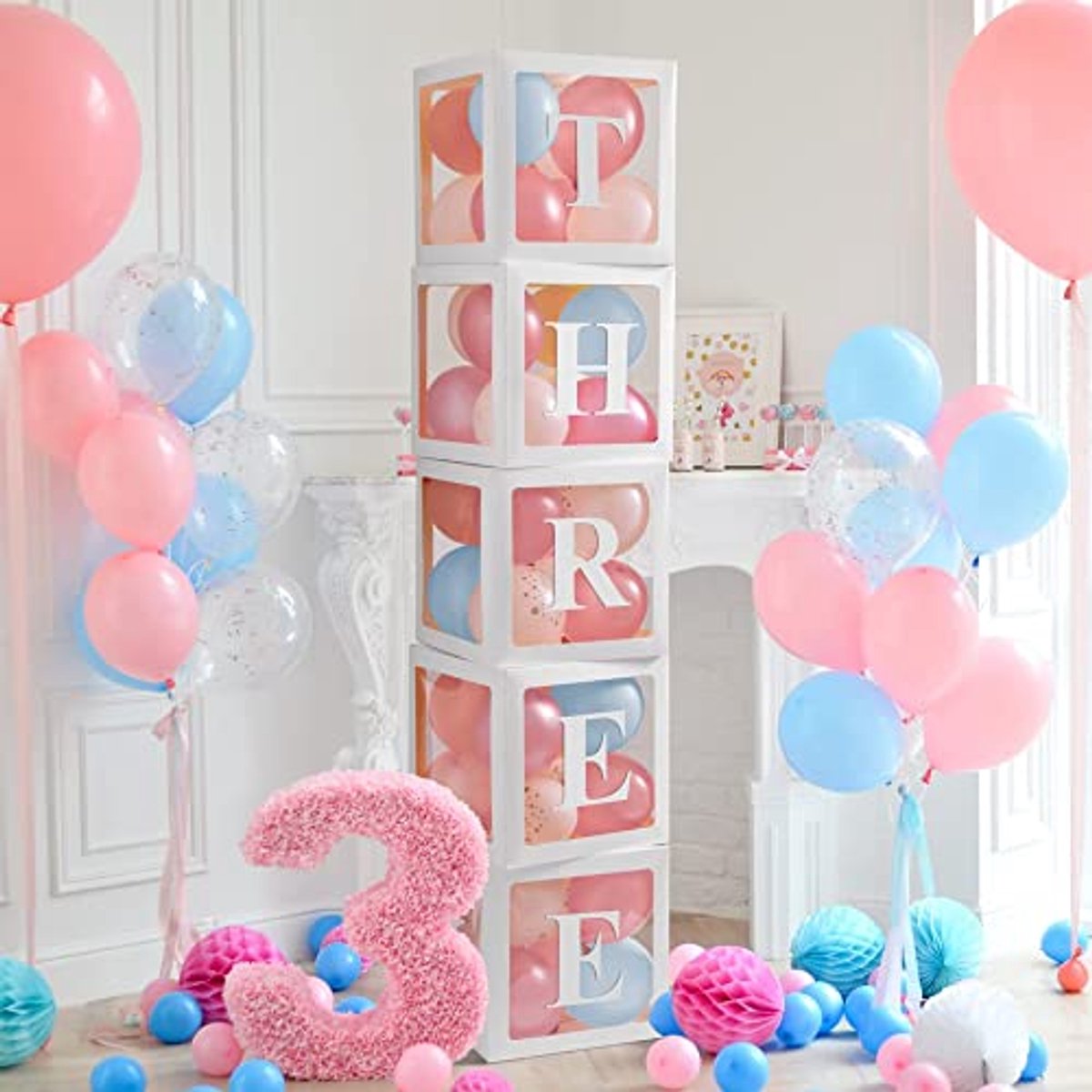 Deze set bevat 5 ballondozen met 54 letters, perfect voor het decoreren van babyshowers en verjaardagsfeesten. De witte transparante uitstraling voegt een elegante touch toe aan elke gelegenheid. Of je nu een feestje voor een jongen of meisje organiseert, deze decoratiedozen zijn een geweldige keuze. Maak je feest onvergetelijk met deze veelzijdige en kleurrijke babyblokken. Eenvoudig op te zetten en stijlvol, ideaal voor elke feestelijke gelegenheid.