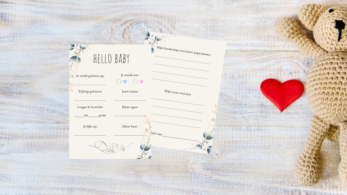Leuke activiteit voor op de babyshower en aandenken aan de babyshower, dubbelzijdige kaarten zodat voor meer tekst en leesplezier voor later!