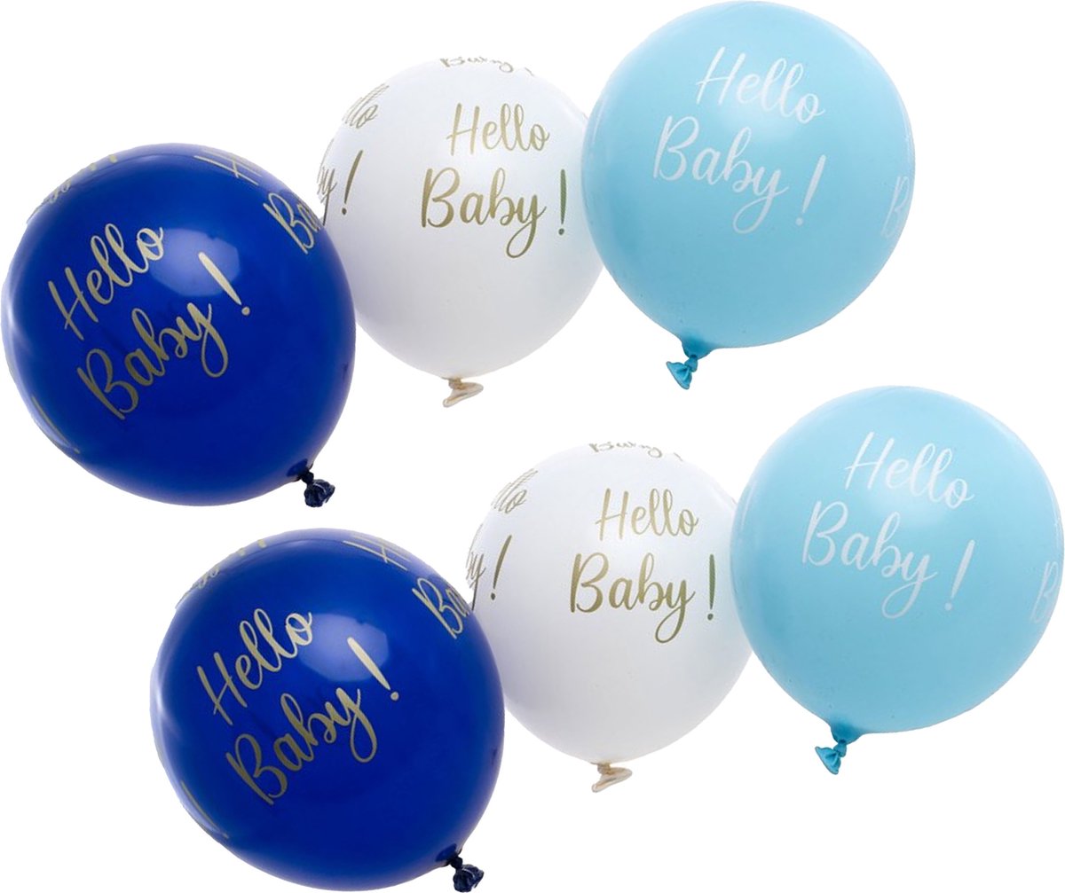 24x baby kraamfeest ballon. Deze “Hello Baby” ballonnen in blauw zijn de perfecte versiering voor een kraamfeest, geboortefeest of babyshower! De zachte kleur en de lieve opdruk maken de ballonnen een hartelijke en feestelijke toevoeging om de komst van je kleintje te vieren. Met deze “Hello Baby” ballonnen vier je de komst van de kleine in stijl en breng je warmte en gezelligheid in elke feestelijke ruimte.