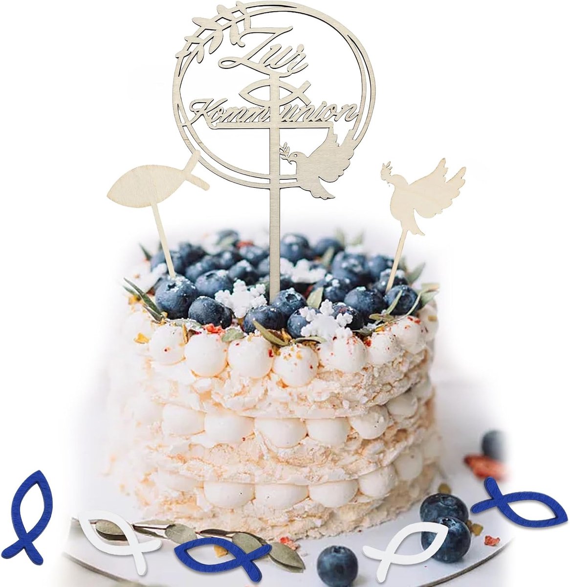 Communie Decoratie – Cake Toppers en Houten Vissen Maak uw feest extra speciaal met onze prachtige communie decoratie! Dit pakket bevat: