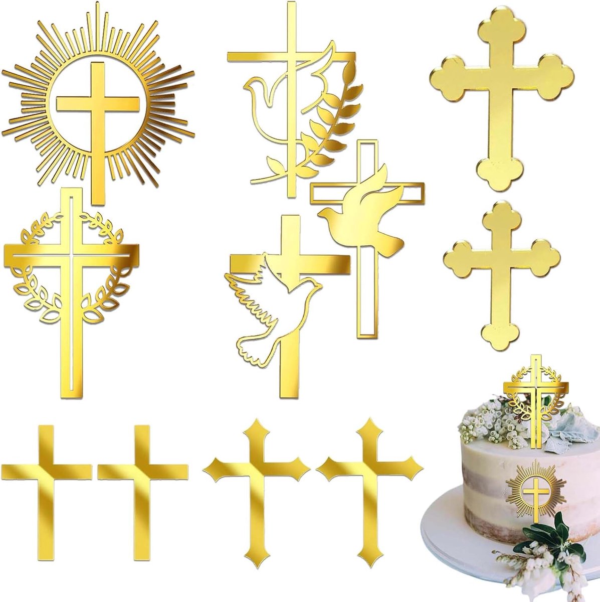 Cake Decoratie – Cross Cake Attachment – Dove Gold Acrylic Cake Decoration – Uitzonderlijke Dove Cake Toppers – 11 Stuks Cross Cake Toppers – Communie Decoratie voor Bruiloften – Verjaardagen