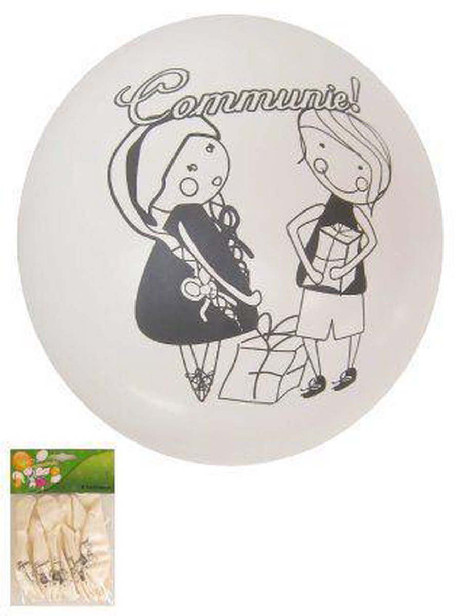 Eerste communie ballon verpakt per 8 stuks.Verpakt met 2 kleuren (geel en wit) 12inch/32cm.Niet geschikt voor het vullen met helium.Viert u binnenkort een communie feestje en bent u op zoek naar een eerste communie ballon met opdruk? Als u deze eerste communie ballon met opdruk nu bestelt heeft u deze vaak al morgen in huis. Alles is bij ons op voorraad. Twijfel niet en bestel zoveel eerste communie ballonnen als u wilt.