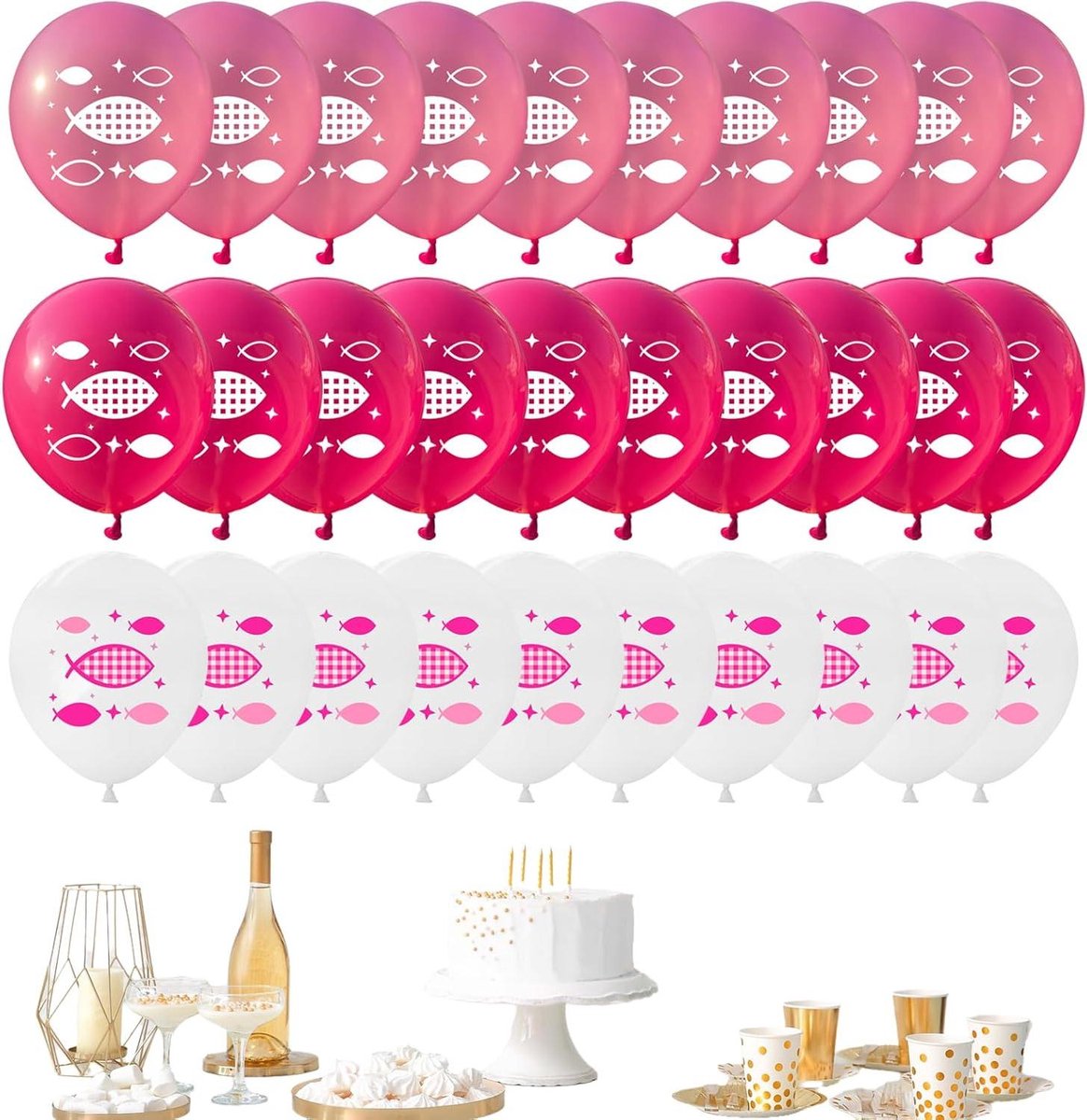 Roze Feestballonnen Decoratie voor Communie & Vormsel – 30 Stuks, Geschikt voor Eerste Communie, Doop en meer met Vis, Duif en Bijbel Symbolen