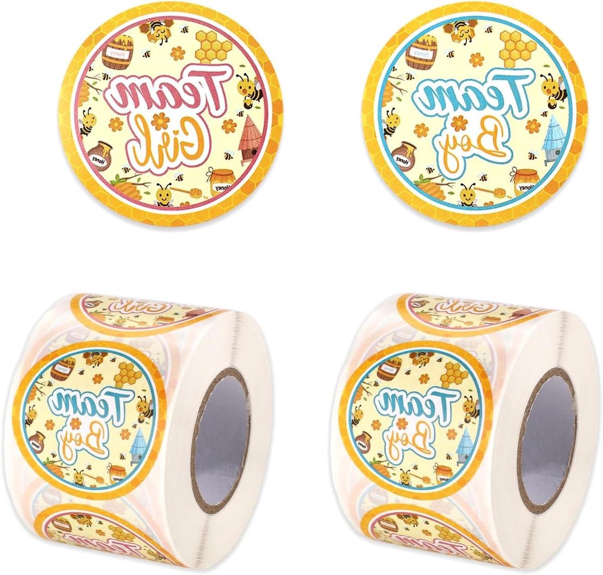 Allecto plus – Bumble Bee Gender Reveal Stickers | 1000 stuks | Team Boy of Team Girl Stickers | Babyshower Feestartikelen | Gender Reveal Party Games