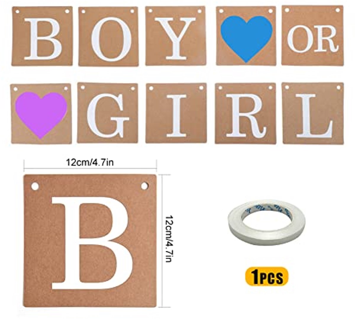 Gender Reveal Party: Revealing your baby’s gender at the party will be a surprising announcement. Welcome a new baby to your family, share the joy with more people, the gender reveal banner will create a more pleasant atmosphere. Use this boy or girl banner to let the gender reveal ceremonially and brighten up your party. Easy to assemble: this set for gender revealing decorations is very easy to assemble. Each flag of kraft paper of the genus reveal bunting has 2 holes on the top, you just need to assemble the ribbons with attached plastic thread cutting needle, which is easy to install in minutes. The baby shower banner can be used indoors and outdoors. Reusable baby shower banner: The gender revealing decoration banner is made of high quality kraft paper with smooth surface, neatly cut edges and no confetti. The baby reveal banner is thick and does not produce folds easily, giving you a good decorative effect. And the banner gender reveal is reusable, just fold it gently and save it for another use. Gender Reveal Decoration Set: You will receive 1 pack boy or girl gender reveal banner, including 10 pcs kraft paper flags, 1 roll of white ribbon and 1 thread cutting pin. Each flag measures 12 x 12cm/ 4.7 x 4.7 inches. 8 pcs flags are printed with the words “BOY OR GIRL” in white and the other 2 flags are printed with two hearts, one blue and one pink.