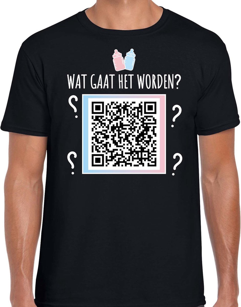 Gender reveal QR code shirt wat gaat het worden – heren – zwart – een meisje – Gender reveal kleding / outfit L