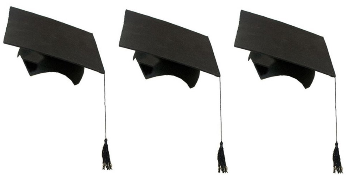 4x afstudeerhoedje geslaagd in het zwart met kwast voor volwassenen. Zwart traditioneel afstudeer hoedje met kwastje om te dragen bij diploma uitreikingen. Materiaal: 95% vilt, 5% karton. Maat: ongeveer 56/57 cm.
