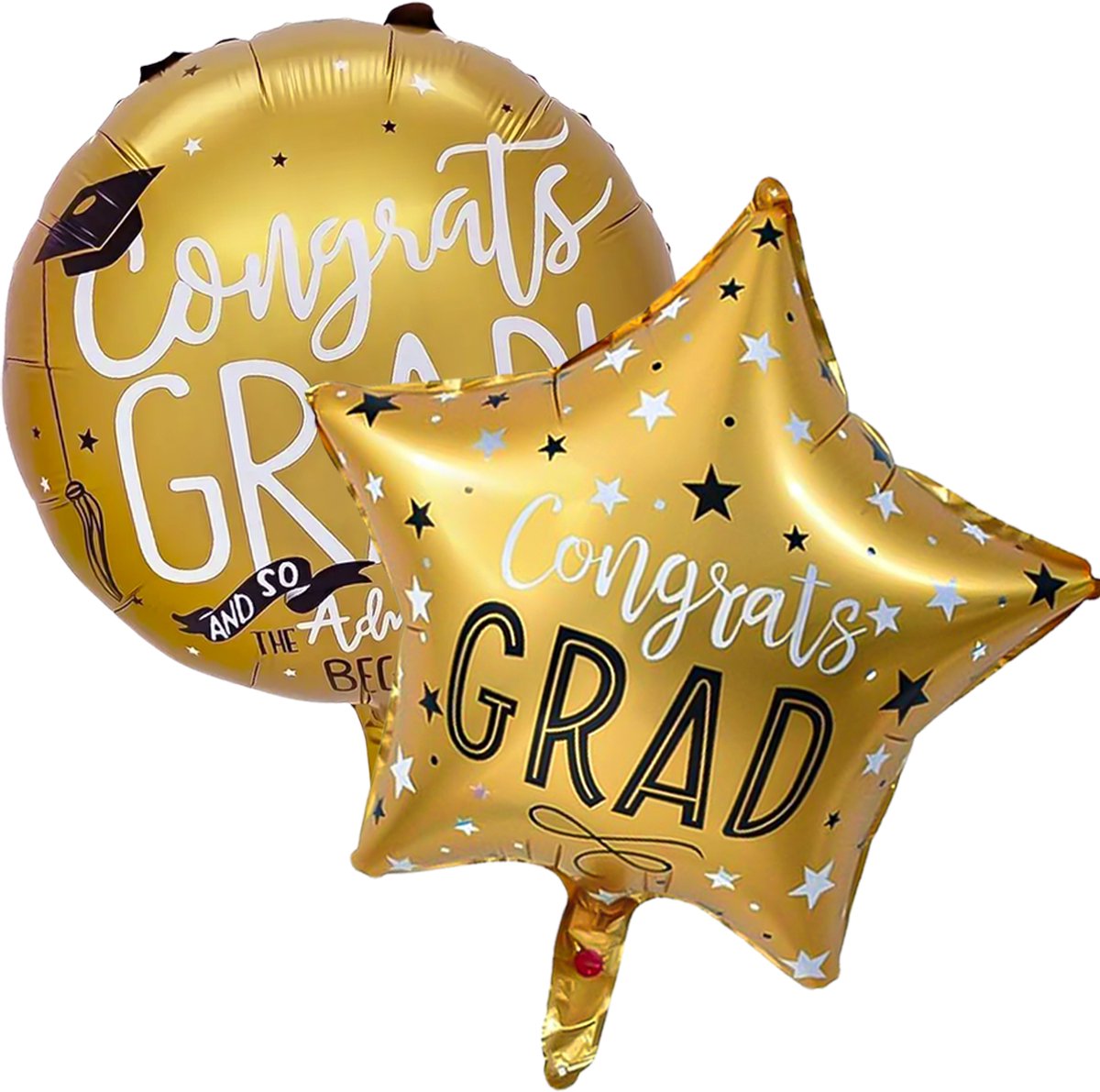 Graduation Ballonnen Set – Geslaagd Versiering – 2 Stuks – Congrats Grad – Goud – 45 cm ✓ Perfect voor het vieren van jouw geslaagd moment!