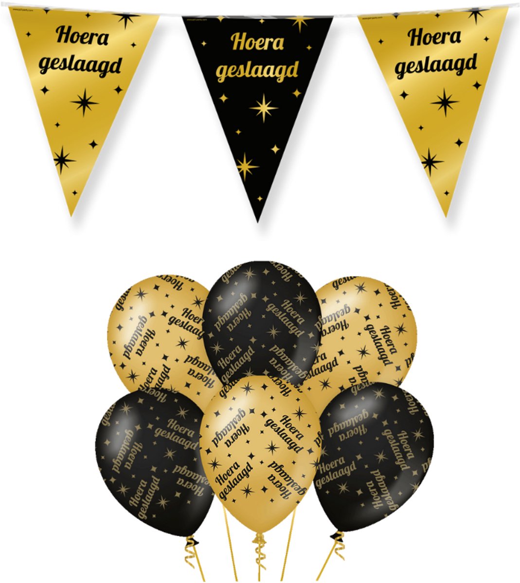 Geslaagd Versiering Pakket – Zwart Goud Classy | Stijlvolle Feestdecoratie voor een Geslaagde Prestatie