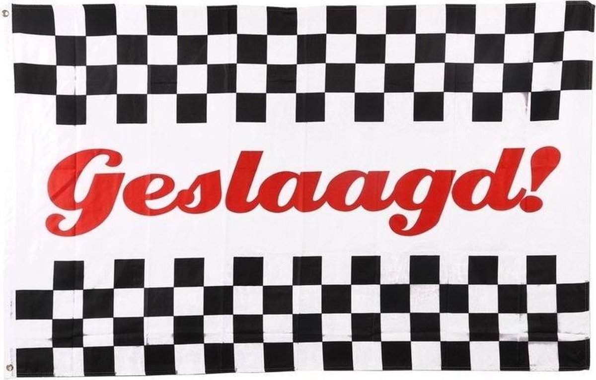 Geslaagd vlag – 155 cm – Race thema – rijbewijs gehaald – diploma behaald – versiering – feestartikelen