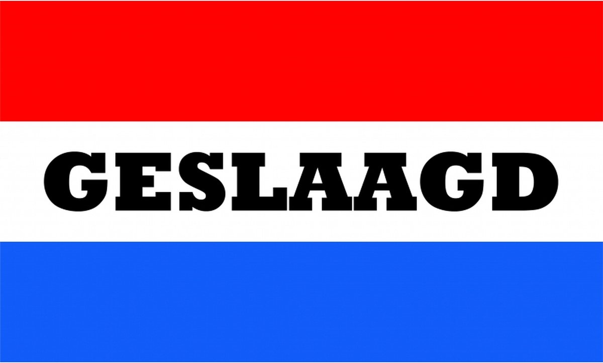 Laat iedereen zien dat er iets te vieren valt met deze feestelijke Geslaagd-vlag! Deze vrolijke geslaagd vlag is uitgevoerd in de bekende Nederlandse driekleur (rood, wit, blauw) en voorzien van het woord “GESLAAGD” in het midden.