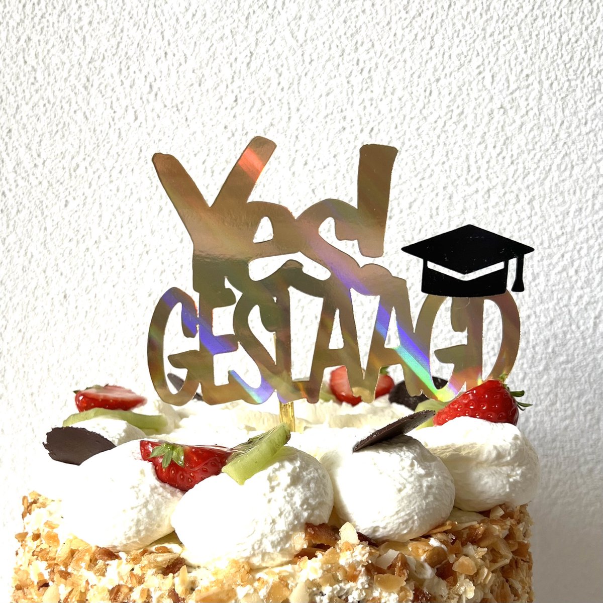 Taarttopper | Taart topper | Geslaagd | Diploma | Yes | Goud | 14 cm breed