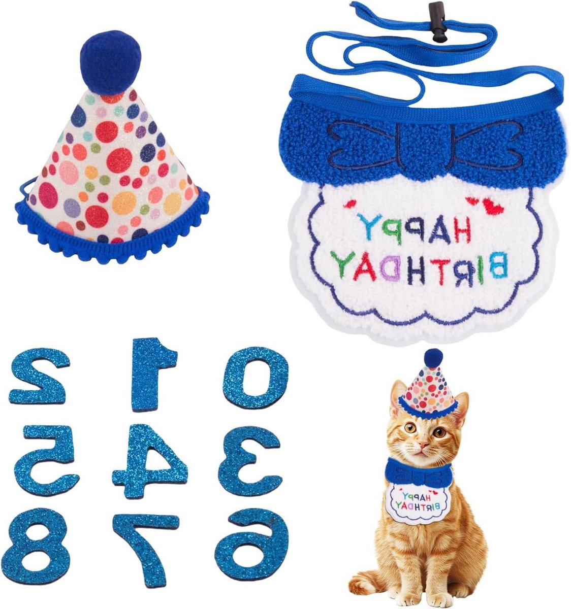 Brenzoos – Verjaardagsfeest Benodigdheden Kat – Blauw – 2 Stuks – Feestdecoraties – Jongen Kat – Kittens – Hoed – Cijfers – Huisdier – Outfits