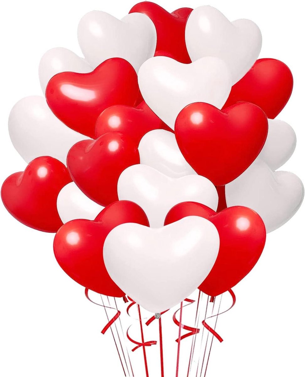 Brenzoos – Latex ballonnen in rood en wit – set van 100 stuks hartballonnen voor bruiloft, Valentijnsdag, verloving.